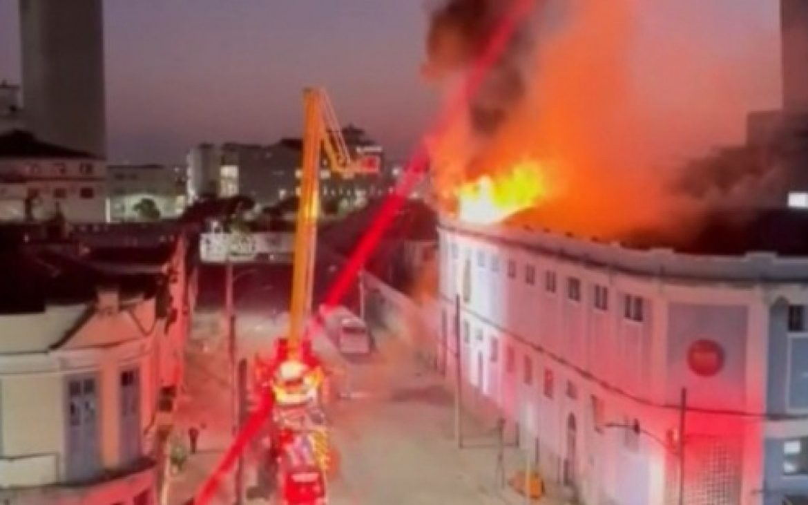 O fogo teve início em um edifício situado na esquina das Ruas do Livramento e Sacadura Cabral. Imagens compartilhadas nas redes sociais mostram as chamas se alastrando pelo teto do prédio.