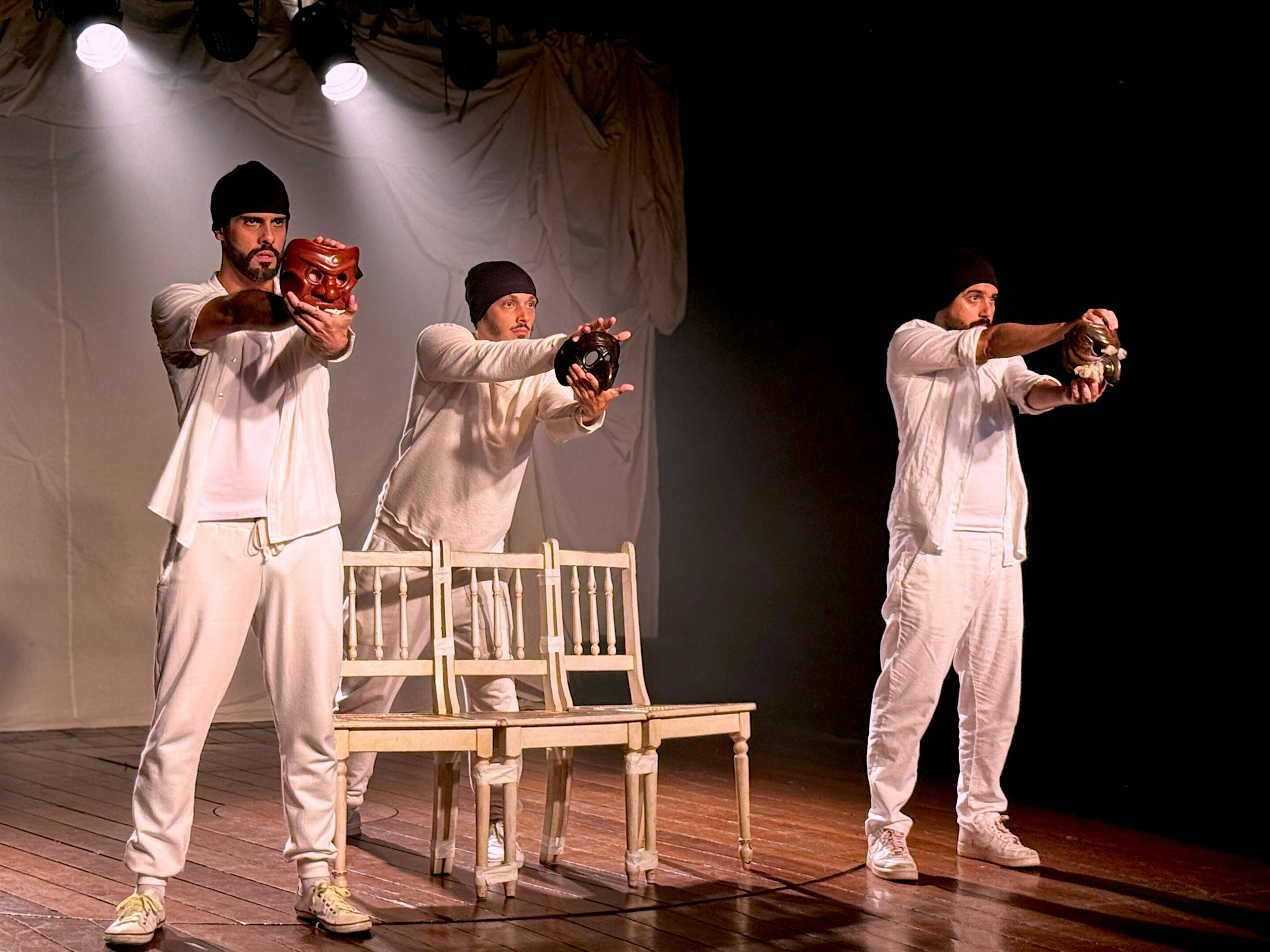 Depois de receber 5 indicações e o Prêmio de Humor na 17ª edição do FITA (2025), a comédia surreal com “tragédia, mistério e galhofa” volta à cena para investigar com humor e irreverência os fundamentos do teatro. A idealização, direção e atuação é de André Dale, George Sauma e Leandro Soares.