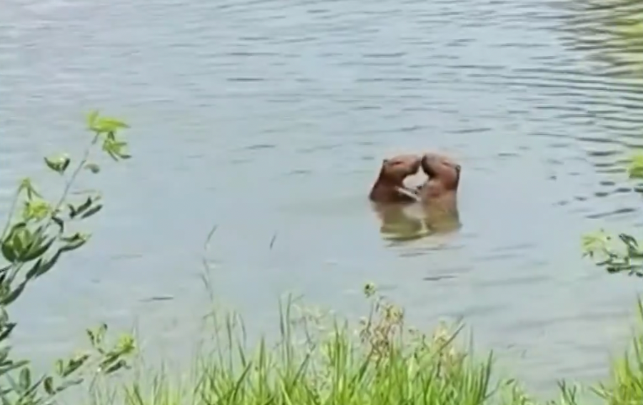 Segundo especialistas, essa cena pode estar ligada ao comportamento reprodutivo da espécie, já que o acasalamento das capivaras geralmente ocorre dentro da água.