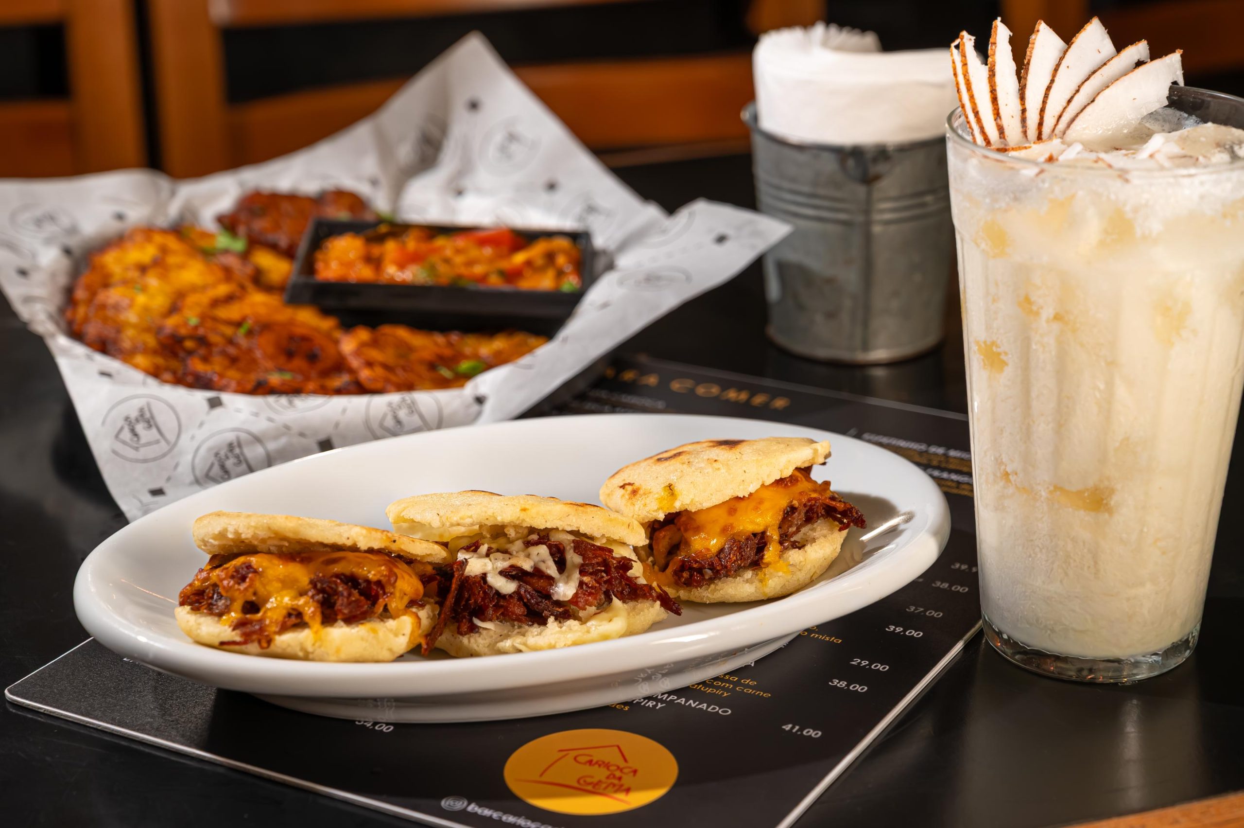 O novo menu inclui três pratos inspirados em sabores latinos: patacones feitos com banana-da-terra; arepa recheada com carne seca e queijo, que une elementos típicos da Colômbia e do Brasil; e limonada de coco, disponível nas versões com ou sem álcool. Além disso, o bar disponibiliza um combo que reúne todas essas delícias, proporcionando uma experiência completa aos seus clientes.