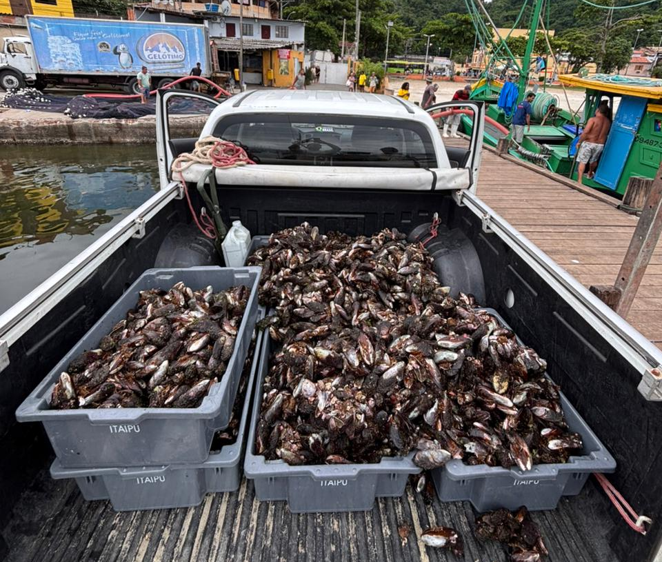 Os mexilhões apreendidos foram doados para os moradores de uma comunidade da região.